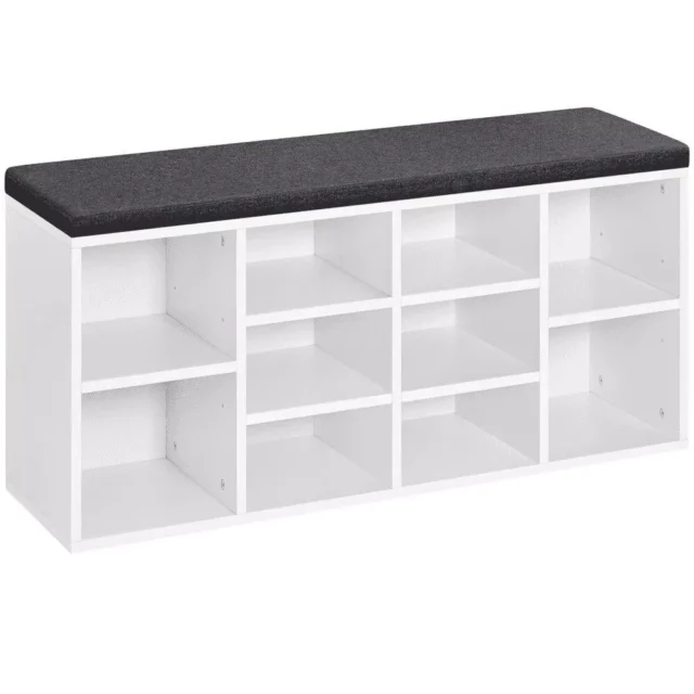 10-Cubbies Wooden Shoe Storage Bench with Cushion Seat