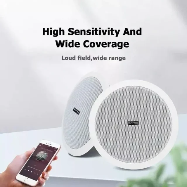 Our Bluetooth Ceiling Speaker is versatile and ideal for various applications, from creating a sophisticated ambiance in your living room to enhancing the audio in your bathroom. It’s especially suitable for places where space is at a premium but quality sound is essential. Think of it as your go-to solution for background music in your home, shops, or even small commercial environments.
