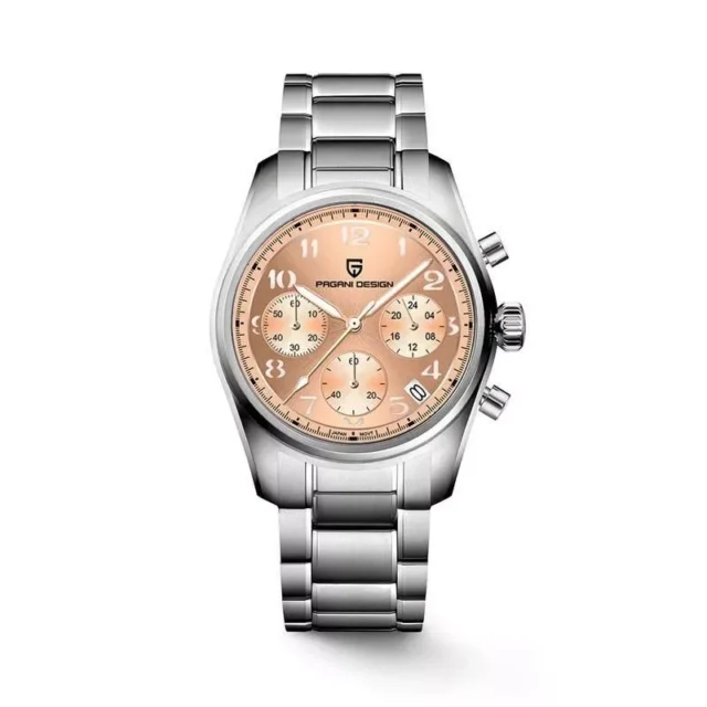 At the heart of this watch is the VK63 Quartz Movement, ensuring accurate timekeeping with a sophisticated touch. The 38mm bead-blasted 316L stainless steel case provides a robust yet refined look, complemented by a versatile 20mm stainless steel strap. The sapphire glass dial window, enhanced with AR and AF coating, guarantees clarity and durability.