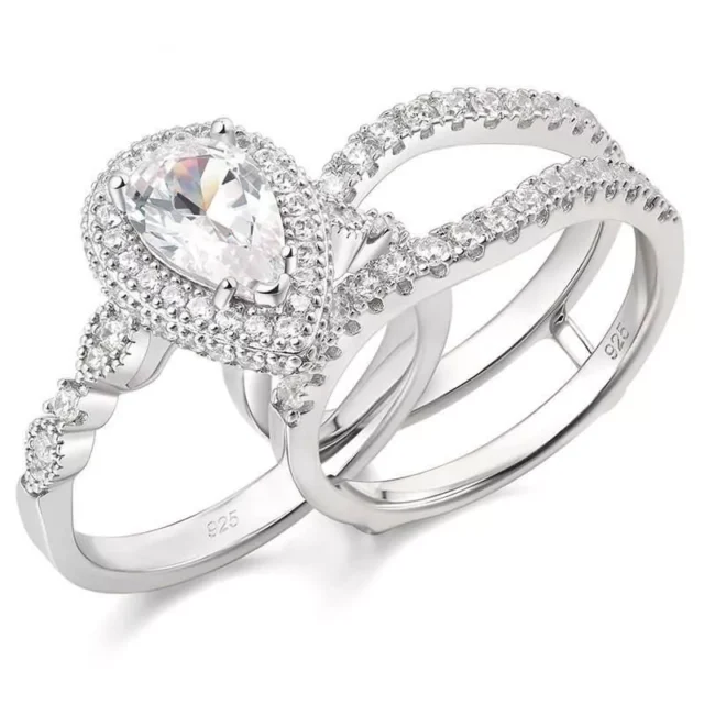 Sterling Silver Pear Cut Zircon Engagement Ring Set